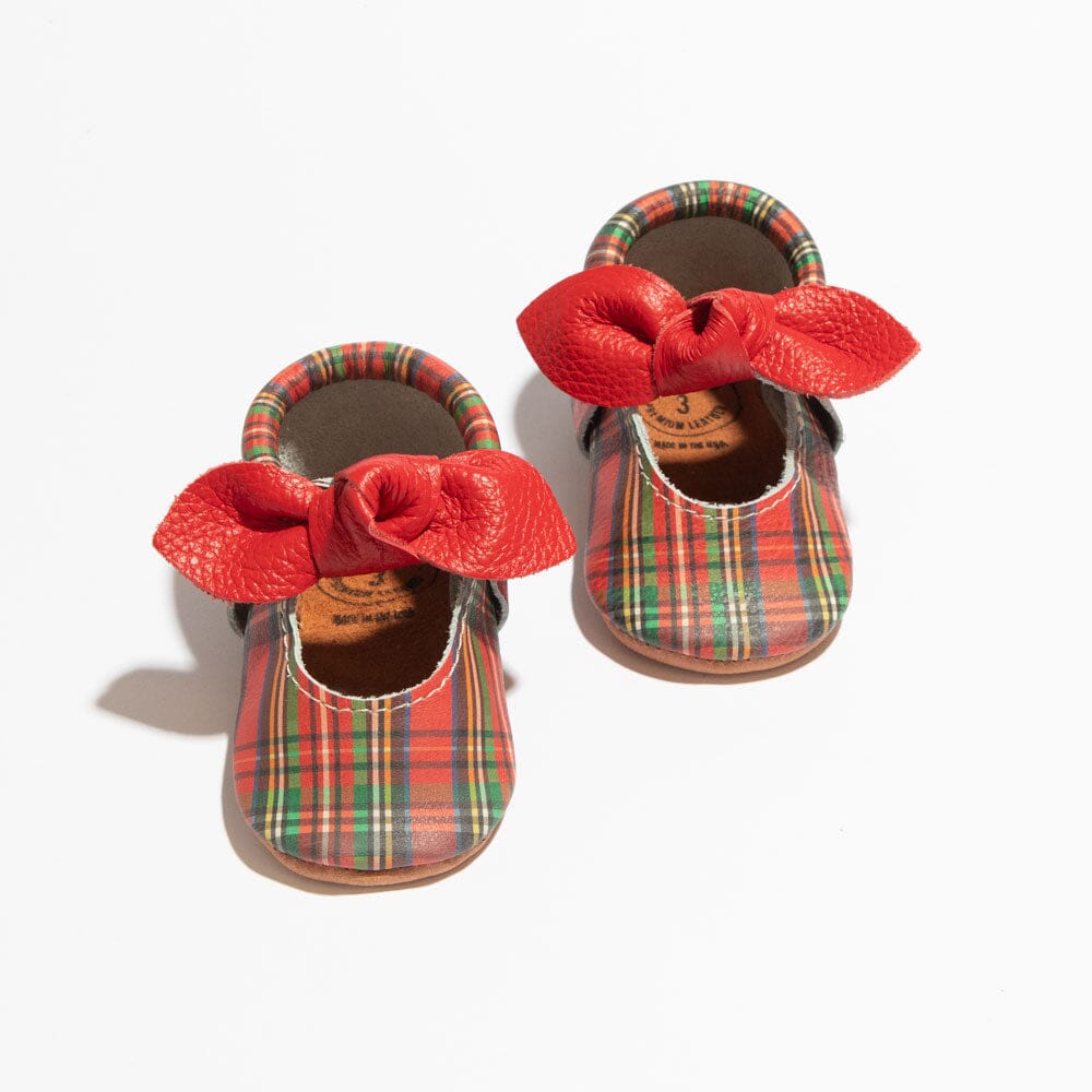 Holly Tartan Knotted Bow Baby Shoe