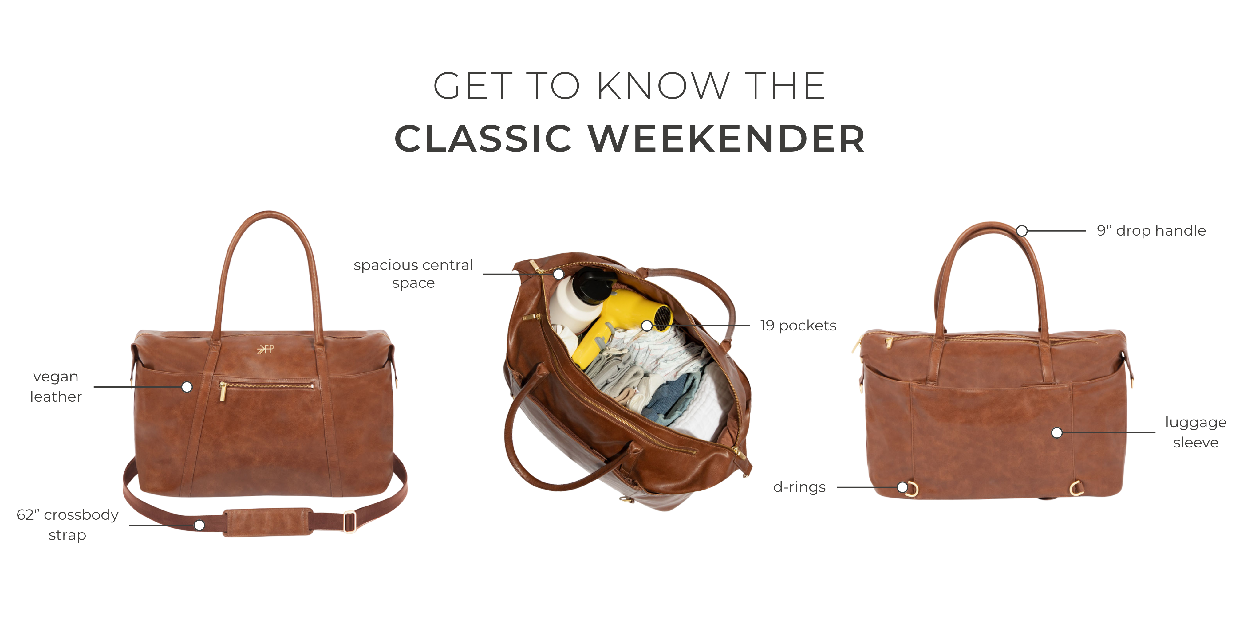 The Classic Weekender was thoughtfully designed to prioritize accessibility and organization, all while looking great. Trust us, this is the bag you don't want to travel without!
